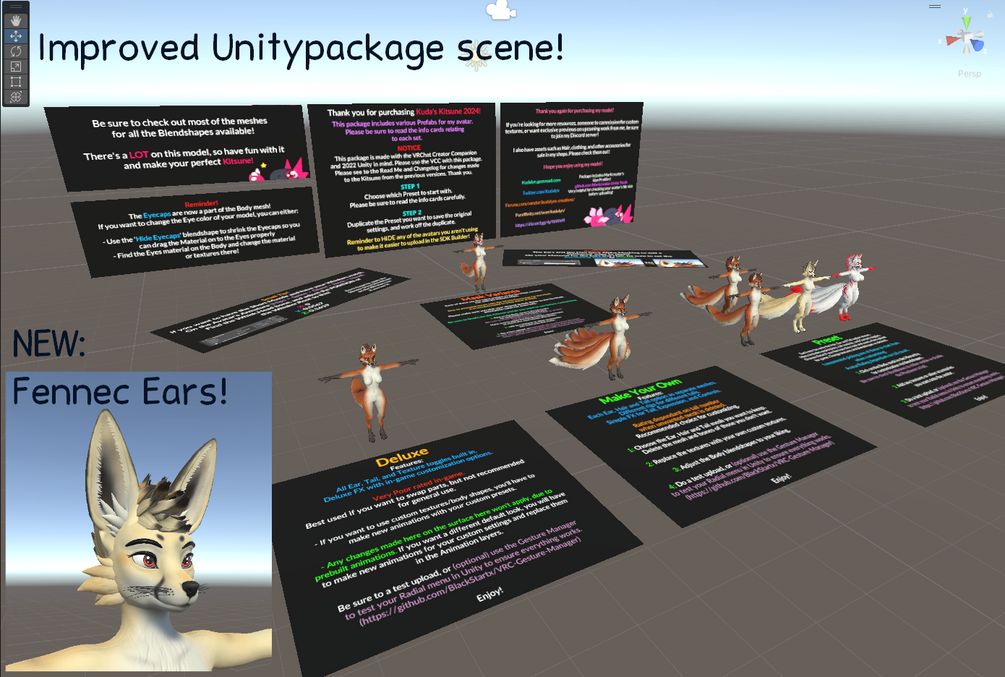- UnityPackage prebuilt with Kitsune scene and prefabs for easy uploads